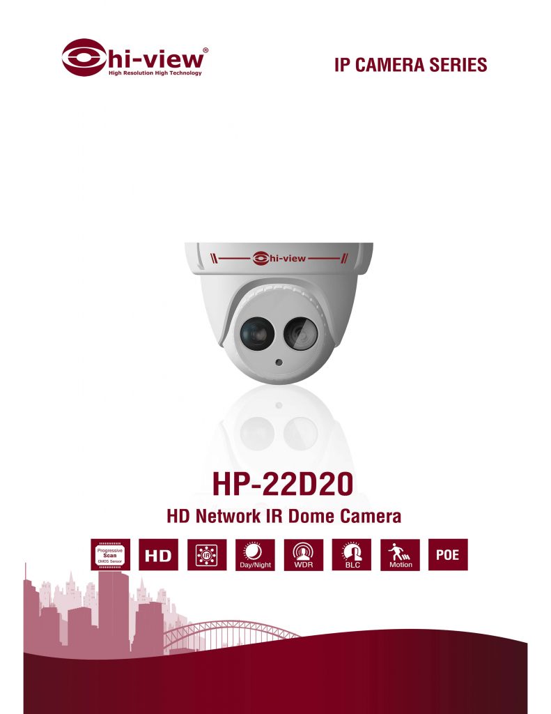hi-view Dome IP Camera, 2.0MP 1920x1080P 1/2.8″ CMOS / 1.3MP 1280x960P 1/3″ CMOS, Lens 2.8mm., IR Array LED 1 pcs., 0Lux 30M. IR On, D&N, Auto ICR, WDR, AWB, AGC, BLC, Smart IR, 3DNR