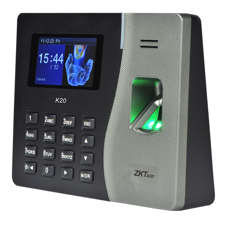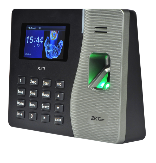 K20 เป็นเครื่องบันทึกเวลาทำงานด้วยลายนิ้วมือพร้อมควบคุมประตูแบบง่าย ซึ่งสามารถเชื่อมต่อประตูและสามารถ
